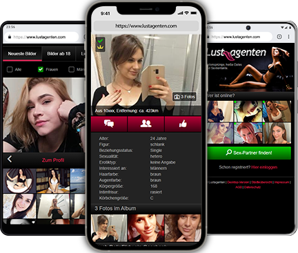 Nie wieder einen heißen Flirt verpassen! Mit Lustagenten kannst du auch unterwegs mit anderen Usern schreiben, chatten und dich verabreden. Ob in der Bahn oder an der Bushaltestelle: Du kannst überall und jederzeit nachschauen, wer dir geschrieben hat oder wer dich geil findet. Suche nach interessanten Singles in deiner Nähe. Lade unterwegs neue Fotos in dein Profil hoch und zeige anderen was du gerade machst. Lustagenten unterstützt alle modernen Handys. Probiers aus!
